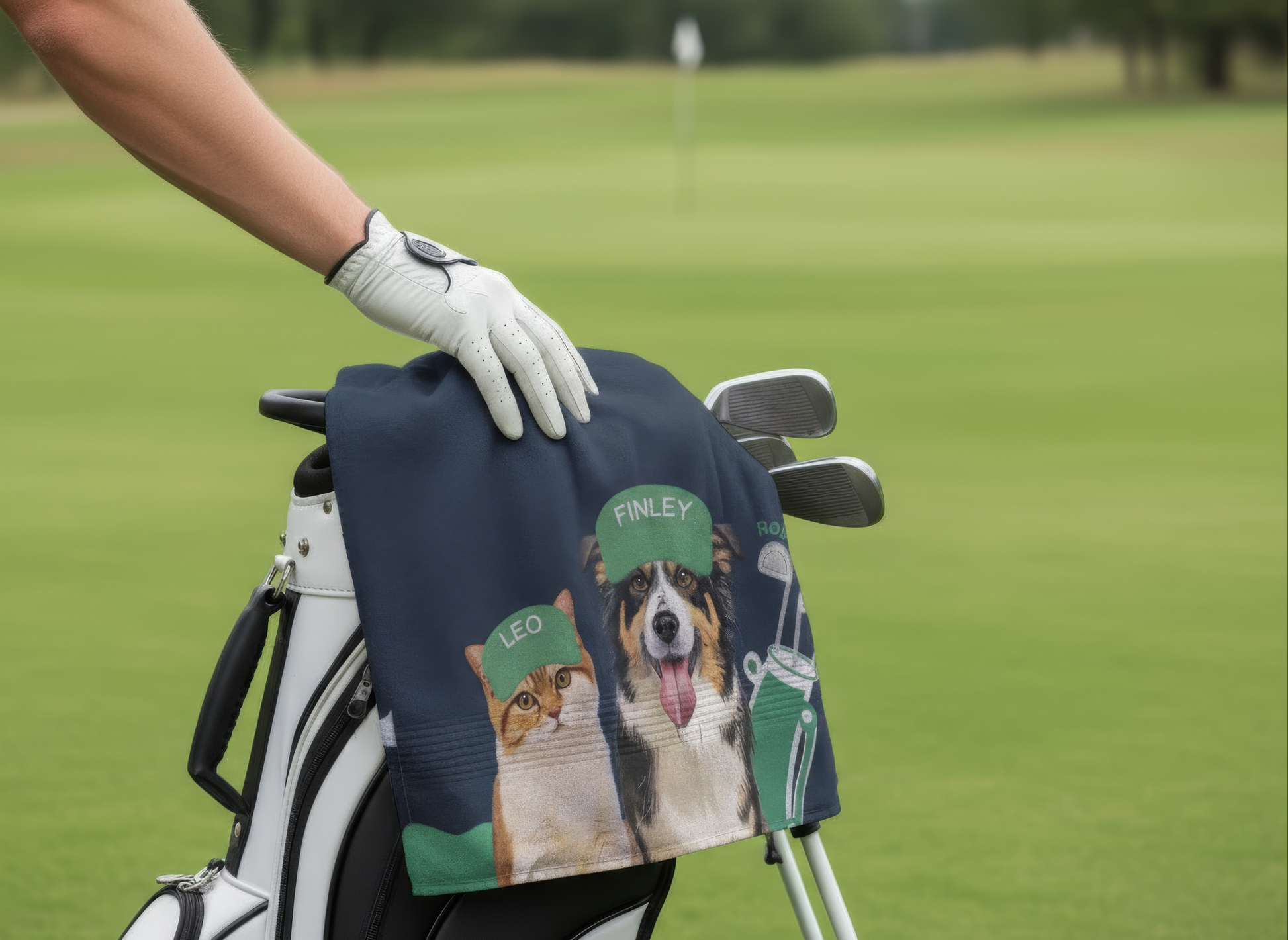 Custom Pet Golf Towel – Personalized Dog & Cat Towel with Photo & Name